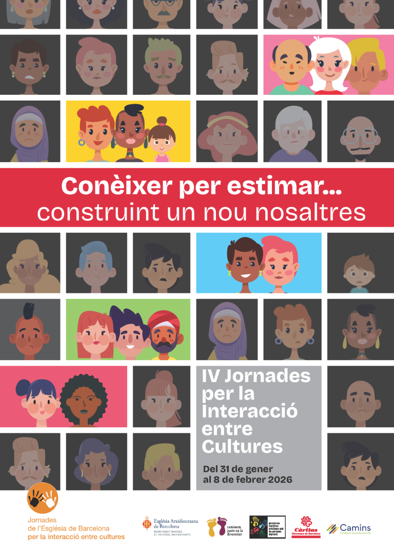 Del 31 de enero al 8 de febrero de 2026 tendrán lugar las “IV Jornadas de la Iglesia de Barcelona por la interacción entre culturas”, con el lema “Conocer para amar. Construyendo un nuevo nosotros”, organizadas por el Secretariado Diocesano de Pastoral, Cáritas Diocesana de Barcelona, Fundació Camins, La Plata (PECI) y Caminamos juntos en la diversidad. Os animamos a participar de las varias actividades organizadas: